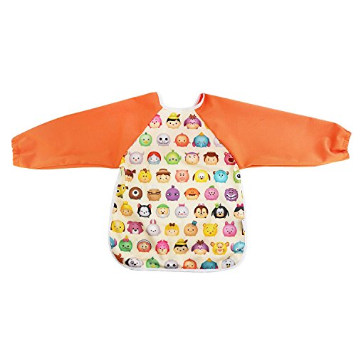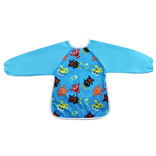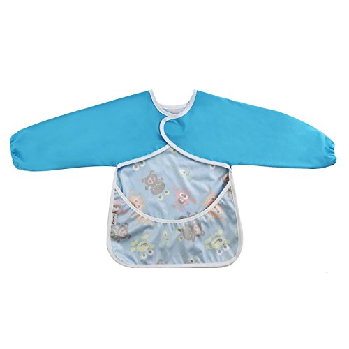 Hi Sprout Unisex Infant Toddler Baby Super Waterproof Sleeved Bib, Reusable Bib with Sleeves& Pocket, Multi Patterns, 6-24 Months (monster story)