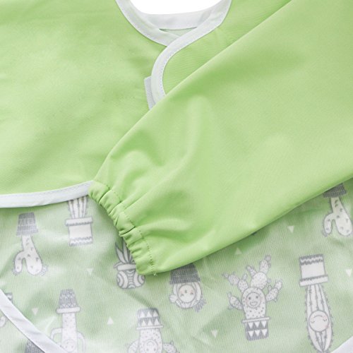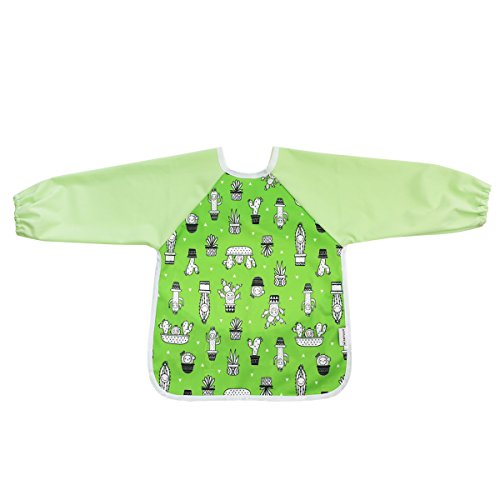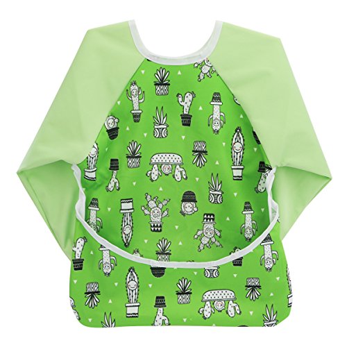 Hi Sprout Infant Toddler Baby Waterproof Sleeved Bib, Bib with Sleeves&Pocket, 12-24 Months (Cactus)