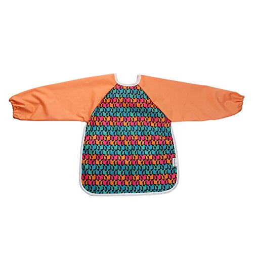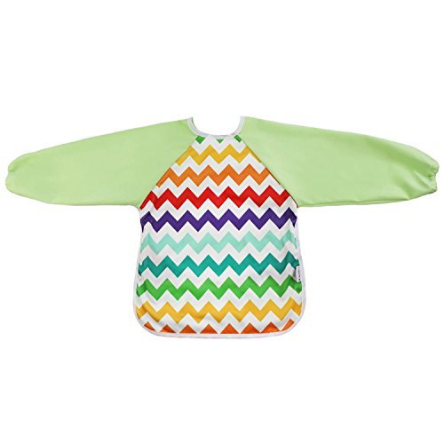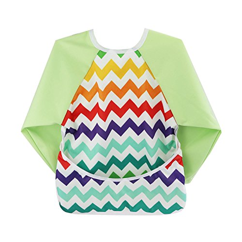Hi Sprout Unisex Infant Toddler Baby Super Waterproof Sleeved Bib, Reusable Bib with Sleeves& Pocket, Multi Patterns, 6-24 Months (rainbow wave)