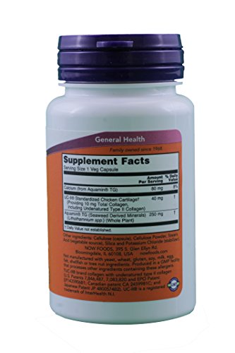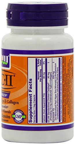 Studio : NOW Foods Publisher : NOW Foods Binding : Health and Beauty Product Description Cartilage is one of the primary connective tissues of the body, providing flexibility and support to bone joints. Undenatured Type II Collagen is the principal structural protein in cartilage that is responsible for its tensile strength and toughness. Derived from chicken sternum cartilage, UC-II consists of Undenatured (native) Type II Collagen that works with the immune system to support healthy joints and promote joint mobility and flexibility. UC-II's patent protected composition has demonstrated its efficacy in human clinical studies. NOW UC-II is enhanced with Aquamin Red Algae Minerals, a natural source of calcium and over 70 trace minerals.* 0