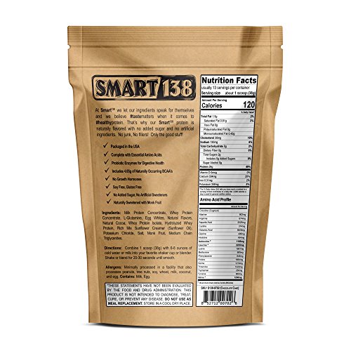 At Smart138, we believe that taste matters when it comes to healthy protein, so we have introduced ready-to-mix protein flavors. No need to come up with recipes and blend as this non-GMO protein is delicious right from the bag, and doesn't have the typical "protein shake" aftertaste. Our gluten-free, low-carb formula makes you feel like you're indulging yourself to a treat, but without the regret that comes later. That's why our Smart138 protein is naturally flavored with no added sugar and no artificial ingredients. Clean, healthy protein with no junk, no fillers! Only the good stuff!Recommended Uses: