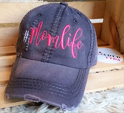 Product Description Embroidered design #momlife cap features a two-tone design on a soft, distressed baseball cap with faux leather and metal buckle back. Cap is proudly designed in the US by Loaded Lids. 0