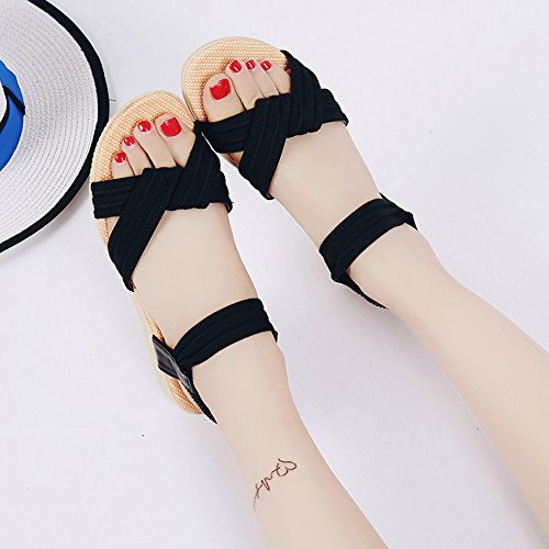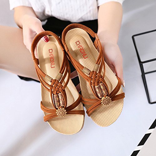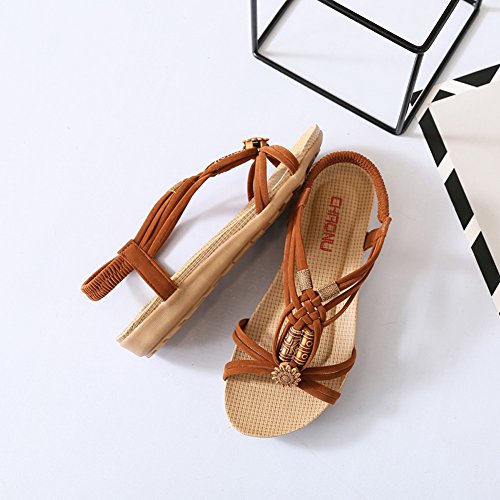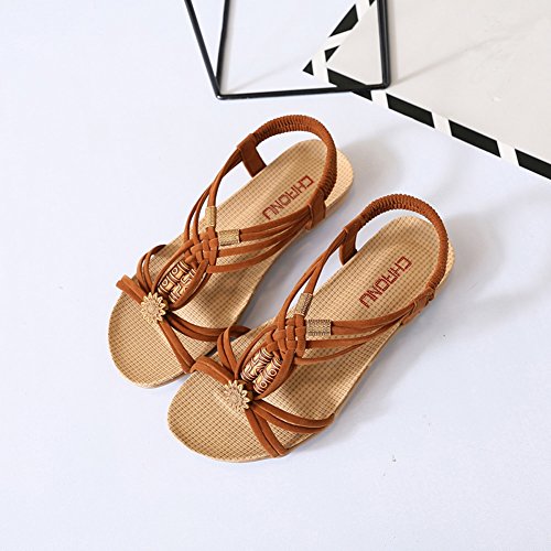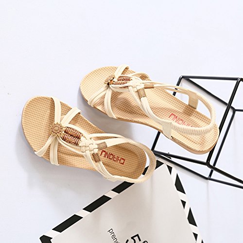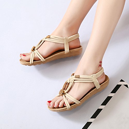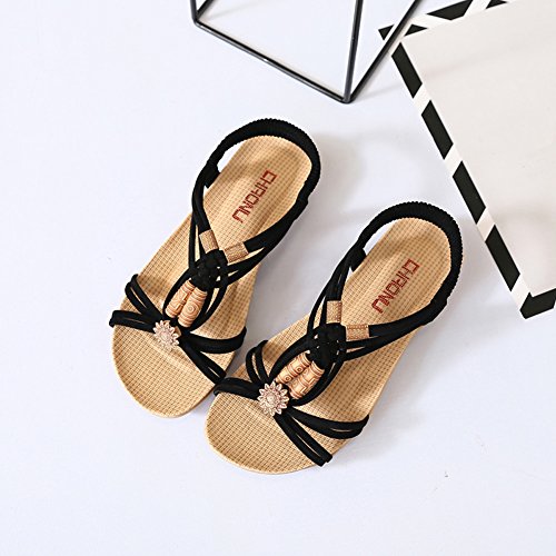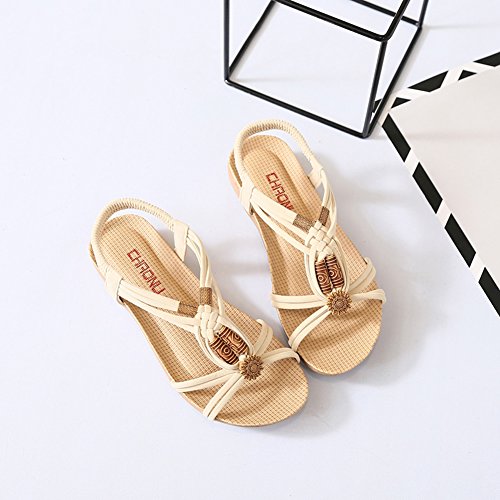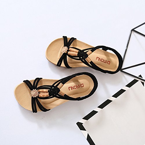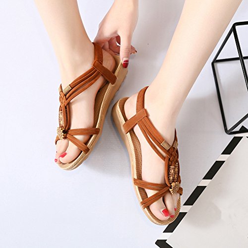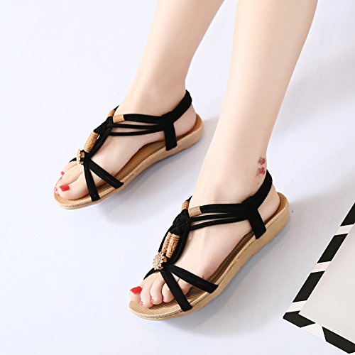 Binding : Apparel Product Description This comfortable sandal with Bohemia style is perfect for waking around in summer, especially for seaside and beach. The sandal features an open toe silhouette, stretchy back-strap, and slip on design. Finished with lightly cushioned insole for all day comfort. If you have problem of the item, please contact us we will do our best to resolve the problem for you Package: 1 x A pair of shoes 0