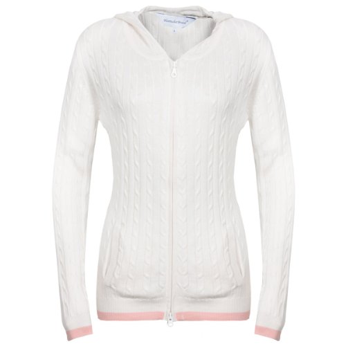 -. Title : Navy-White Women's Cable Knit Sweater - Hooded with Pockets