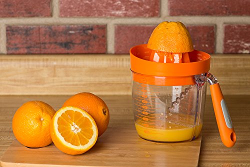 - Feature : Are you looking for an easy and convenient way to make fresh and delicious juice of all kinds? Then you need this manual fruit juicer by Clever Chef! / With the easy-grip handle and quick-juice juicing head It couldn't be easier to make fresh orange juice, lemonade or any other delicious juice-based drink! / This juicer has an easy-to-read measuring system on the outside of the pitcher and on the inside of the juicer with the ingenious stair-step measuring design so you can tell how much is in the pitcher from all angles. / Designed to fit up to 4 cups (1,000 ml) of juice, this juicer measures 5 x 7.5 x 7 inches. / Backed by our 100% Satisfaction Guarantee (details below in description)