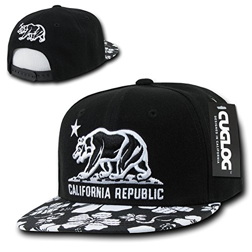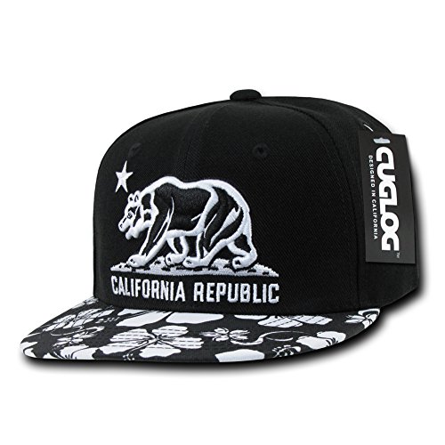 - Feature : 75% Acrylic/25% Cotton Floral Design on Bill / Cali Bear 3-D Embroidery on the Front/Back / Cotton Sweatband / Retro Flat Bill / One Size Fits Most