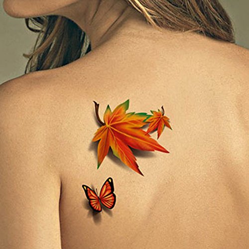 TAFLY Temporary Tattoos 3D Butterfly and Maple Leaf Waterproof Body Art Stickers 5 Sheets