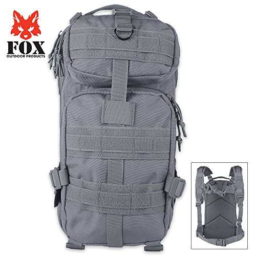 Studio : FoxOutdoor Publisher : FoxOutdoor Binding : Electronics Product Description Accepts modular or A L I C E attachments Hydration bladder compatible Features. Extra HeavyWeight 1200 Denier Material. 1 large main zippered compartment with pouch and mesh pocket. Self repairing zippers. Vertical compression strap. 3 rows of loop panels with modular attachment points. 2 gear web straps with slide buckle. Adjustable padded shoulder straps. Modular attachment points for attaching points. Back panelhydration pocket with easy access tab. Padded back with breathable mesh backingSpecifications. Color Shadow Grey. Weight 27 lbs 0