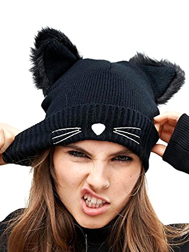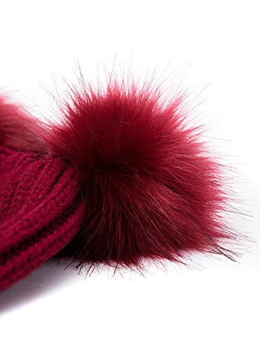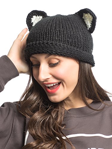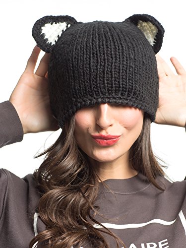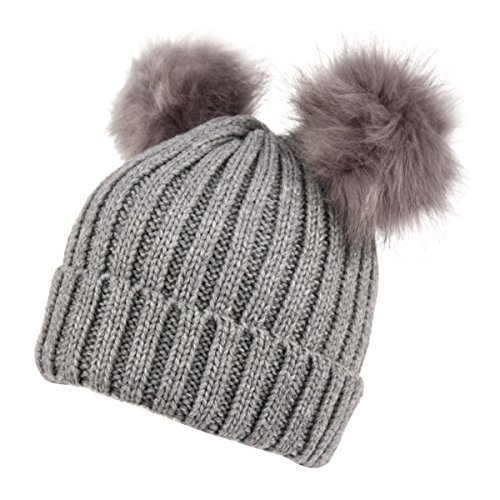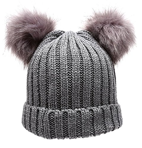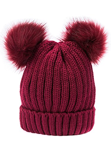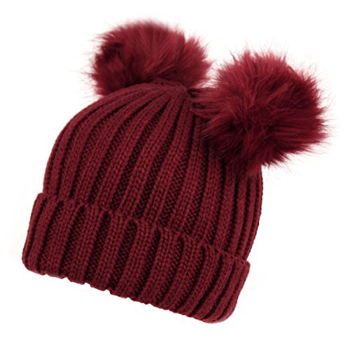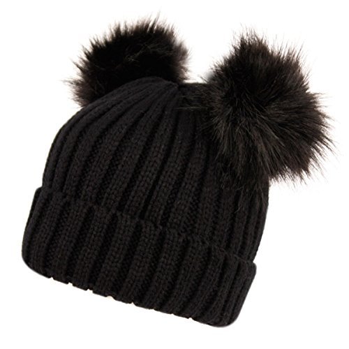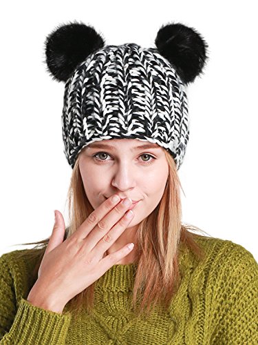 | Clothink Women Brown Cute Bear Design Pom Pom Bobble Beanie Hat |