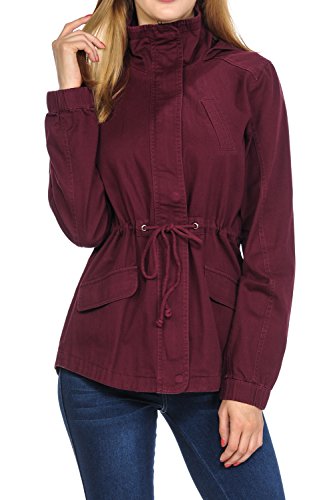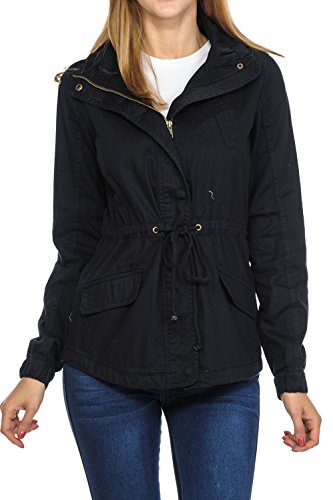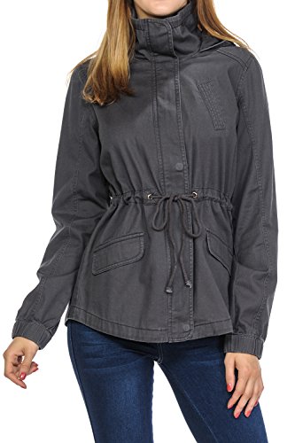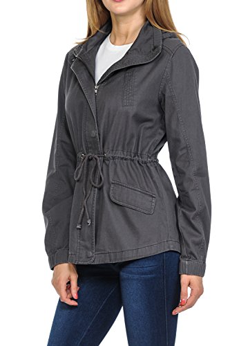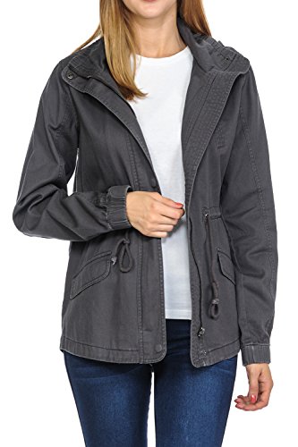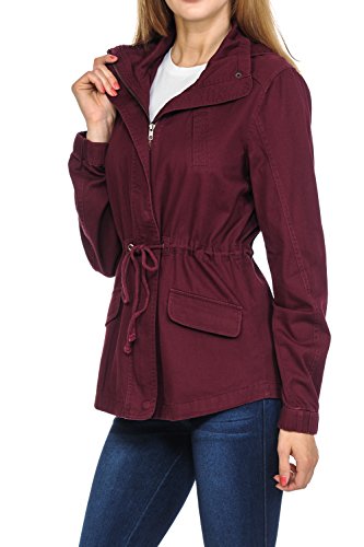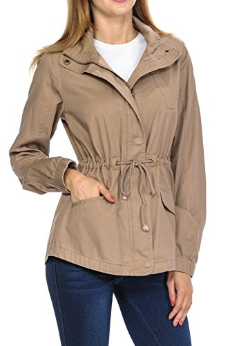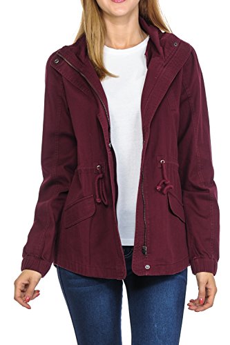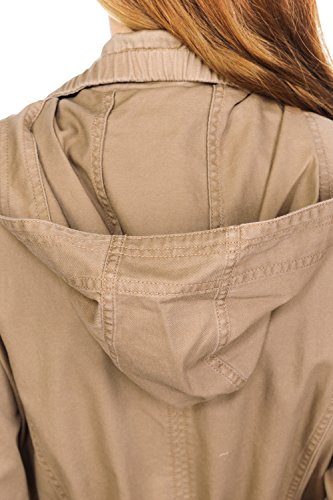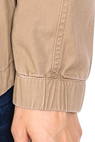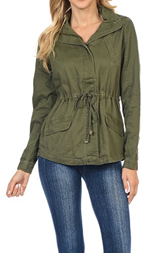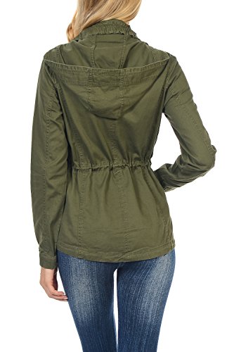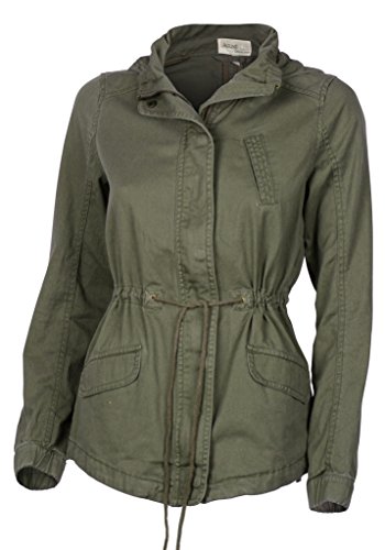 Binding : Apparel Product Description Women's Premium Vintage Wash Olive Green Lightweight Military Fashion Twill Hoodie Jacket