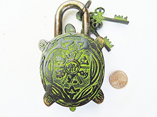 -. Title : AVS STORE Turtle Monastery Lock - Solid Brass with Natural Patina in a Beautifully Ornate Padlock. Ornamental Antique Handcrafted Locks for Security and Style