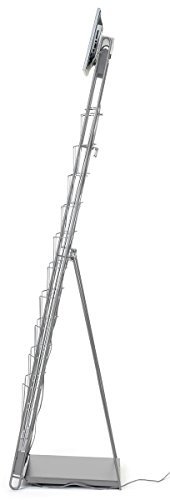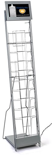 -. Feature : 10-tier steel magazine rack has silver finish / 10.1" Monitor plays multimedia presentations / Includes USB, Micro HDMI ports, built-in speaker / Portable freestanding magazine rack has 10 pockets / Anti-left locking bracket deters tampering