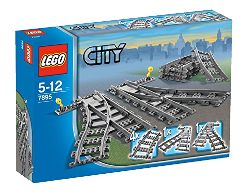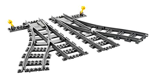 Add switching tracks to your train track layout and change direction with the flip of a lever! Set includes 4 curved rails, 1 left side switching track and 1 right side switching track Tracks do not conduct electricity and therefore are not compatible with LEGO? 9V trains.