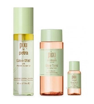 -. Feature : 1 Pixi Glow Tonic With Aloe Vera & Ginseng 100ml / 3.4 ounce / 1 Pixi Glow Tonic With Aloe Vera & Ginseng 15ml / 0.17 ounces / 1 Pixi Glow Mist 80ml / 2.7 ounce