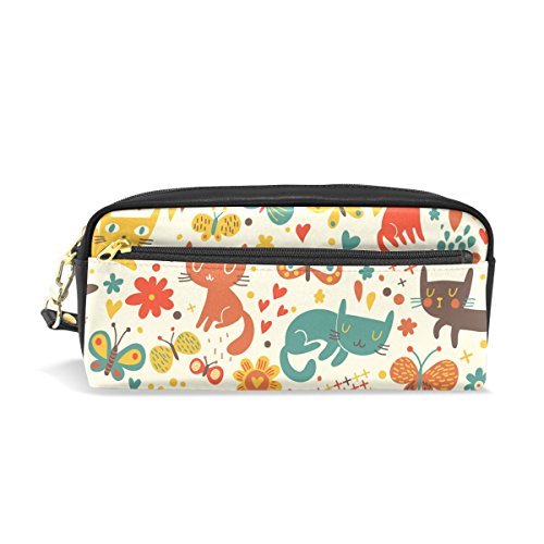 FeiHuang Cartoon Cat Leather Student Pencil Case Pen Cosmetic Bag for Girls Customized Makeup Pouch
