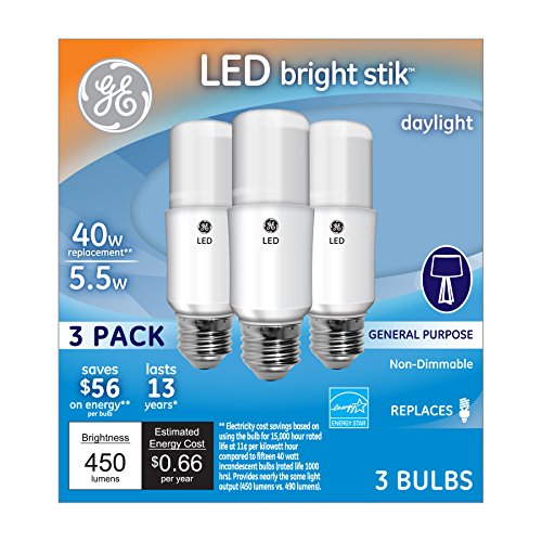 Studio : GE Lighting Publisher : GE Lighting Binding : Tools Home Improvement Product Description LED Bright Stik illuminates spaces with cool, bluish-white light instantly. Its sleek cylindrical shape fits in place of a traditional incandescent bulb?including some sockets where a traditional bulb or CFL doesn’t fit. And, LED Bright Stik performs better than a CFL Spiral bulb: instant full brightness, contains no mercury and is rated to last 50% longer than a 10,000 hour CFL while using 23% less energy to provide 800 lumens. 0