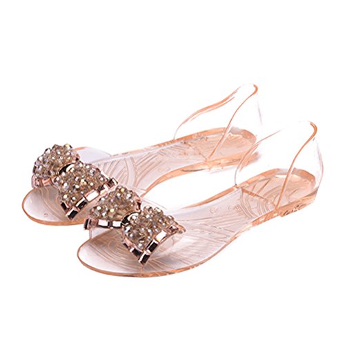 -. Title : OMGard Women Sandals Summer Ribbon Bow Peep Toe Jelly Shoes Sandal Flat Shoes Woman 2 Colors Size