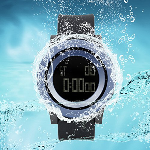 -. Feature : 100% Brand new watch, come with gift box printed Lancardo, Engraving service please contact me. / 2pcs same watches with black plastic band and oversize big watch face, 2 row blue bezel, easy read round digital LED display / Length: 10.0"(25.5cm), Case Dim.: 2.1"(5.2cm), Thickness: 0.6"(1.4cm), Band Width: 1.0"(2.5cm) / Multi-Function: Calendar Date /Week /Month, Alarm, Water Resistant, LED Display, Shock Resistant, Stop Watch, Chronograph / Water Resistant up to 3 atm or 30 m(98.5FT), Suitable for everyday use. Splash/rain resistant. Not suitable for showering, bathing, swimming, snorkelling, water related work and fishing. Not suitable for diving, do NOT press any key underwater.