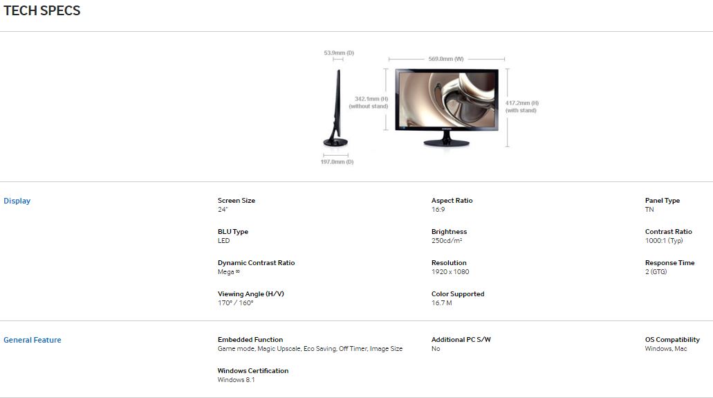 Box Contents 1 X Samsung LED Monitor S24D300H 24" inch