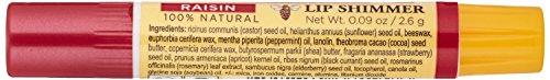 -. Feature : 0.9 ounce tube of 100% natural Lip Shimmer in Raisin / Moisturizes with shea butter, beeswax and vitamin E / Natural fruit oils nourish and soften / Invigorates with a peppermint tingle / Shimmering lip colors available in a variety of shades