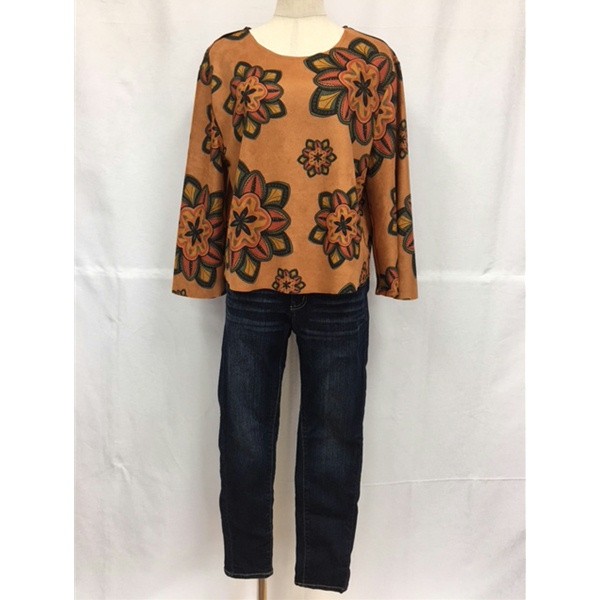 商品名 フェイクスエード スパニッシュ柄トップス