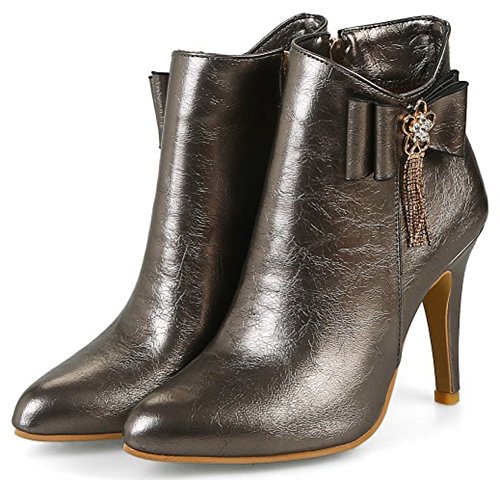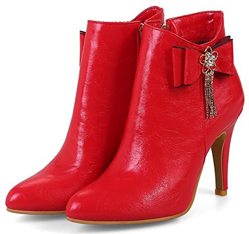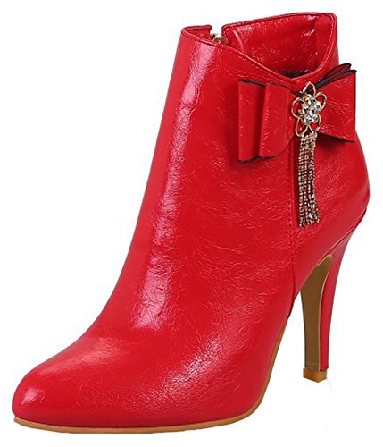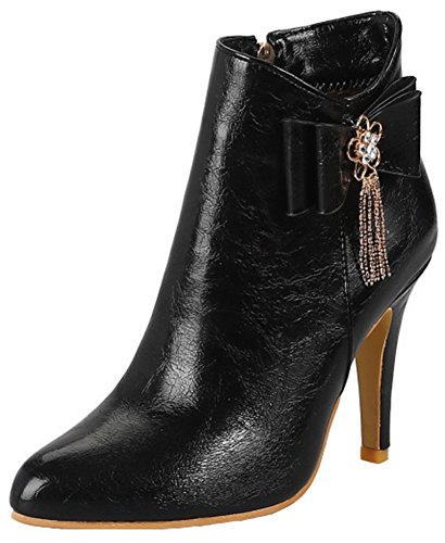 (Mofri)/Women's/Boots/DIRECT FROM USA/Mofri Women's Dressy Bow Rhinestone Stiletto High Heel Short Boots Pointed Toe Side Zipper Ankl...