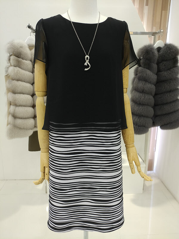 모던한 물결무늬를 유니크하게 표현한 이중 스판 원피스로