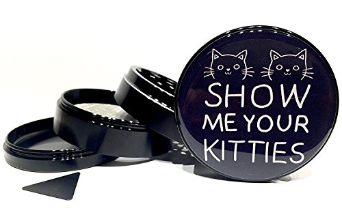 Show Me Your Kitties Grinder Black 4 Piece Premium Quality Metal Grinders 3.0" 76mm Extra Large Size! Cat Cats Pets - 3 inch plus Gift Box!