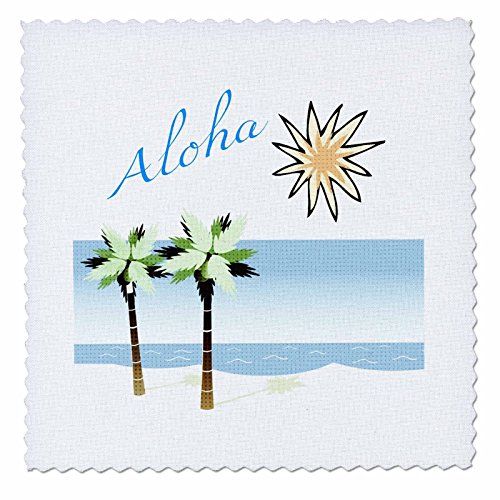 3dRose qs_59873_3 Aloha Hawaiian Beach Art-Travel-Ocean and Palm Trees-Quilt Square, 8 by 8-Inch