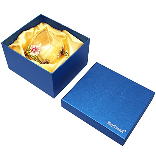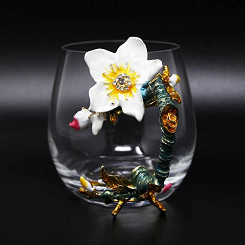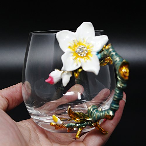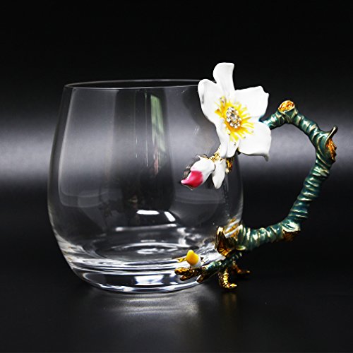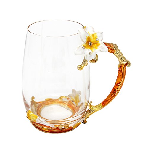 -. Title : Flower Tea Glass Mug with Enamel Handle Design