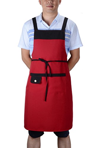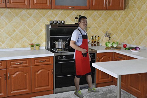 SEW UR LIFE Fashion Waterdrop Resistant Apron for Women/Men Plus Size Bib Apron 2 Colors( Red&Black) 2 Big Pockets Shop Apron Restaurant Apron Bakery Apron