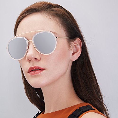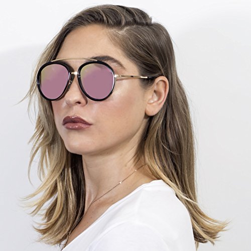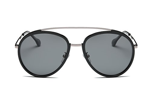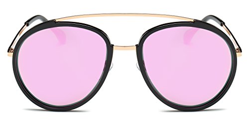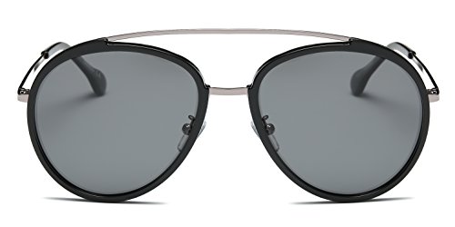 | Cramilo Retro Vintage Oversized Polarized Top Bar Round Sunglasses |