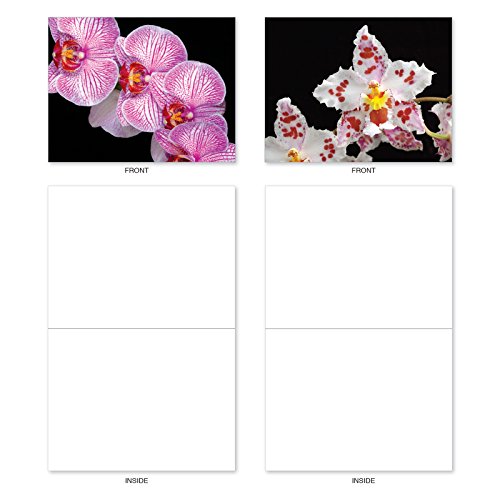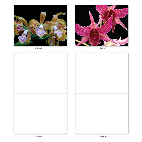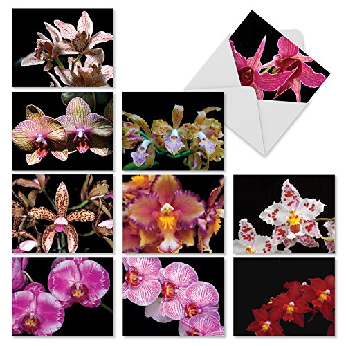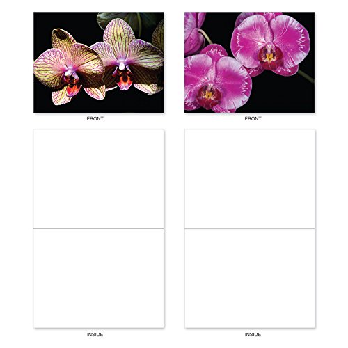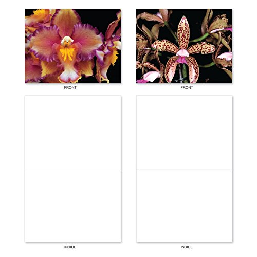 M1734BN Orchid Nights: 10 Assorted Blank All-Occasion Note Cards Feature Exotic Orchid Blooms, w/White Envelopes.