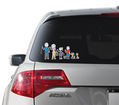 Woodland manufacturing Color Accent Family Stickers are made from outdoor rated vinyl with UV laminate to protect the vibrant colors. Printed in full color, this kit includes 1 each of Mom, Dad, Dog, Cat and 2 each of Boy, Girl. Additionally 1 each of assorted sports and style accessories are included. Decal removal is clean and easy.Feature