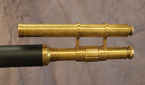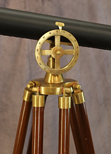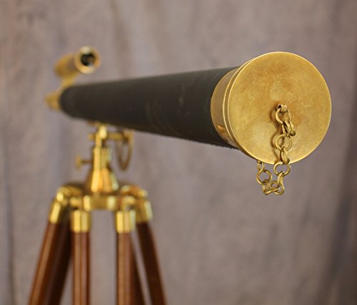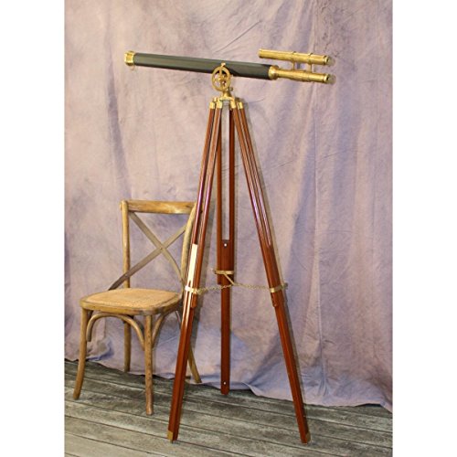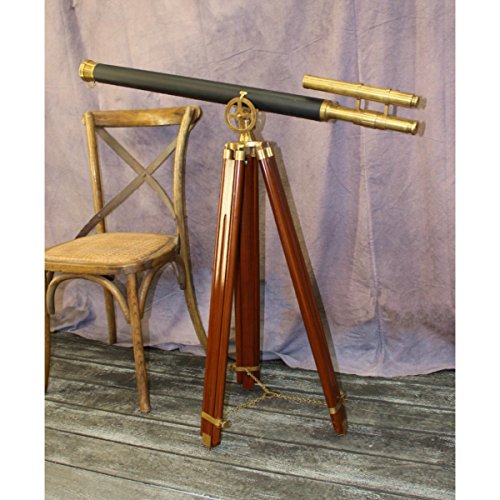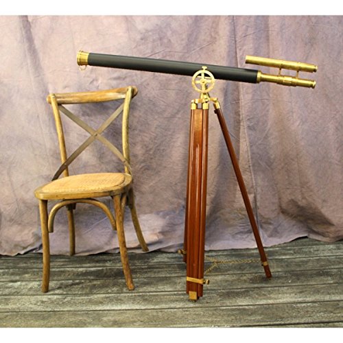 Product Description Huge Antique Replica Telescope with Leather on Scope and Two Scopes on Top Fabulous Nautical Style Decor ( this is a decorative item and does not have calibration for scope power ) Age: New Construction: Leather , Brass and Wood Size: 38" length scope height adjustable from 63" tall down to 38" Another direct imported item from The Kings Bay with a best price to match 0