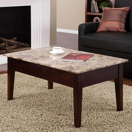 - Title : Faux Marble Lift Top Coffee Table, Espresso