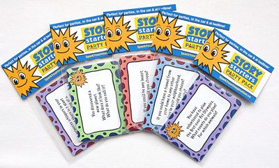Studio : Red Hen LLC Publisher : Red Hen LLC Binding : Toy Product Description Spark Your Imagination Story Starter cards offer open-ended scenarios designed to kick-start imagination, encourage problem-solving and get kids talking. Sold in groups of a dozen packages, each individually sealed package contains 5 cards with fun silly questions. The questions have no right/wrong answers and are designed to get kids unplugged and using their imaginations. Use the cards to inspire art projects, dress up or drama activities, as a game, or to prompt creative activities. Perfect for birthday parties gift bags or party entertainment. The conveniently sized pack of cards is easy to take anywhere. For ages 4 Printed in Canada. 0