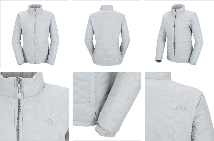 변형 육각 문양의 패턴 퀼팅을 적용한 여성용 재킷입니다.