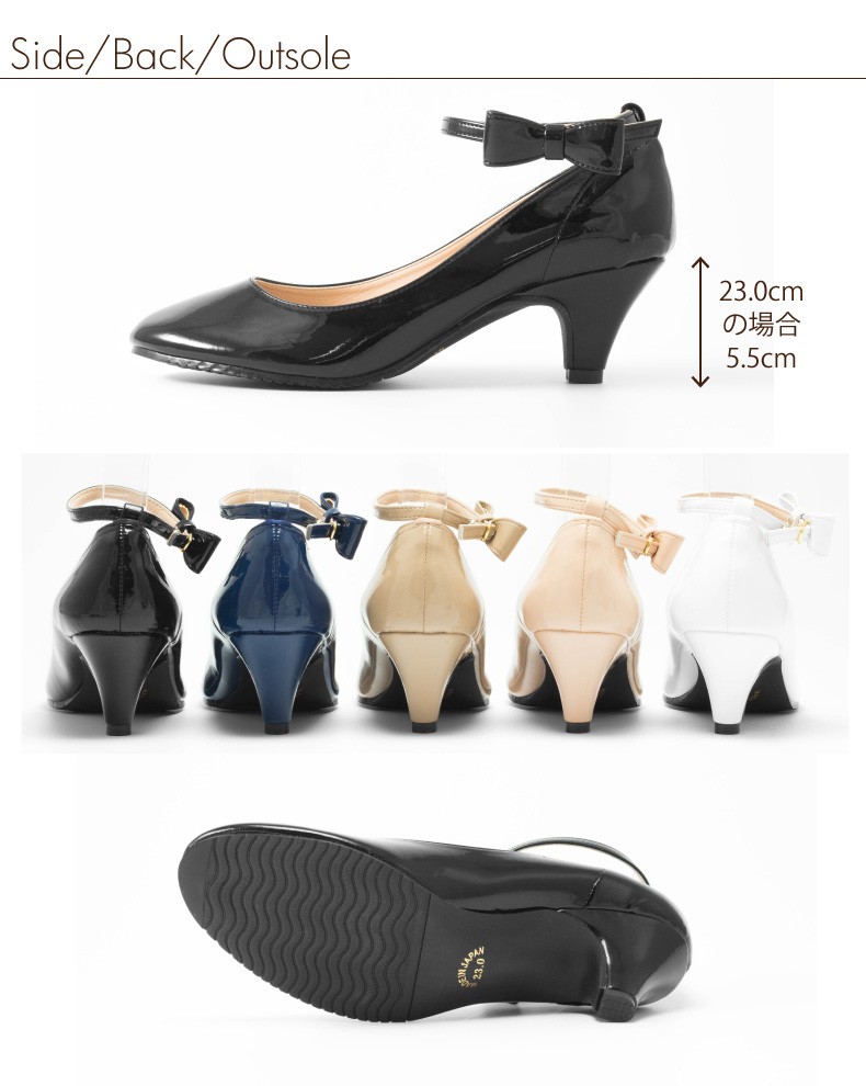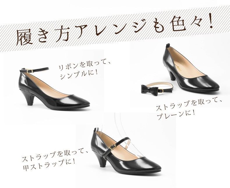 レディース靴 パンプス リボン ストラップ 国産 日本製 メイドインジャパン made in japan ブラック ホワイト ネイビー ピンク ベージュ 黒 痛くない 脱げない ローヒール 2WAY 3WAY 4WAY 安定感 スムース エナメル かわいい 可愛い 大きいサイズ PU レディース 履きやすい 靴 シューズ 歩きやすい 疲れにくい シンプル 無地 シューズ 冠婚葬祭 パーティー 通勤 旅行 22.5センチサイズ 22.5cm 23.0センチサイズ 23cm 23.5センチサイズ 23.5cm 24.0センチサイズ 24cm 24.5センチサイズ 24.5cm
