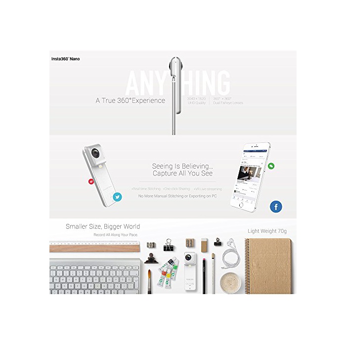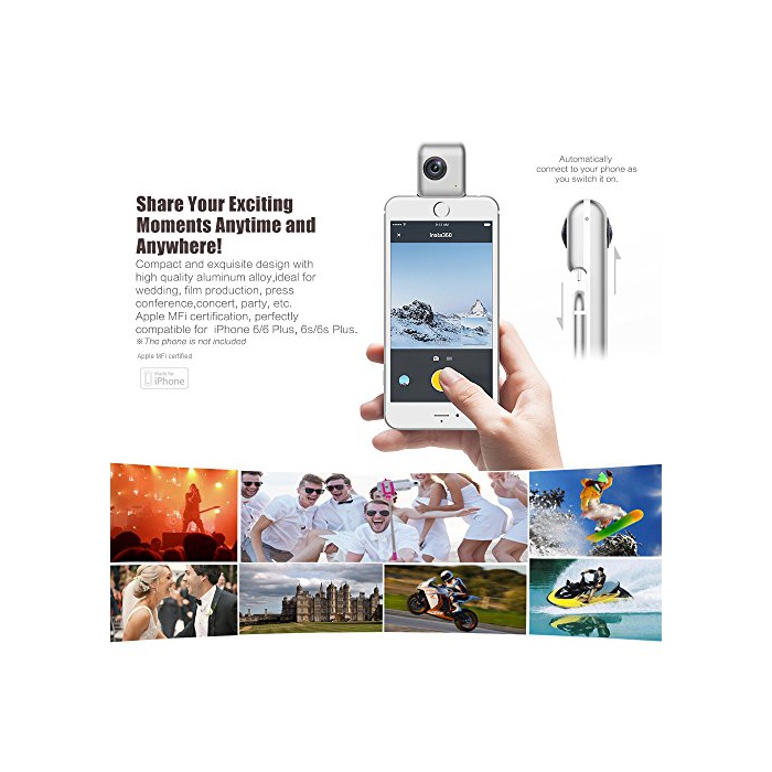 Insta360 INSTA360 Nano 360°전천구 파노라마식 카메라 초HD3K 3040x1520고해상도 디지탈 카메라 두 개의 초광각 어안렌즈 210°+ 210° VR체험 iPhone 6 /
