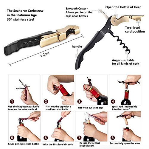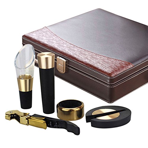 Package: 1x Leather box with lock 1x Hippocampus Opener 1x paper cutter 1x pouring device 1x vacuum wine stopper 1x Stop wine ring