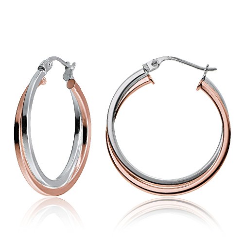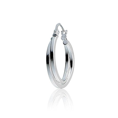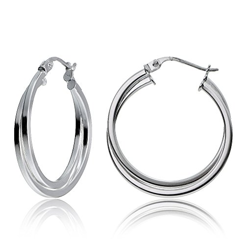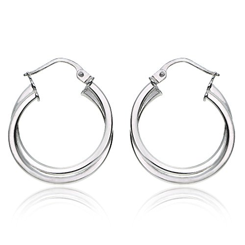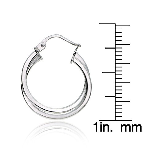 •These earrings feature sterling silver high polished crossover twist round hoops.