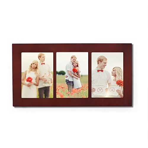 -. Title : Adeco Decorative Walnut Color Wood Divided Wall Hanging Artwork P.R.Int Picture Photo Frame, 3 Opening 5x7"