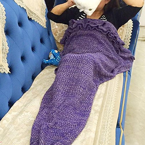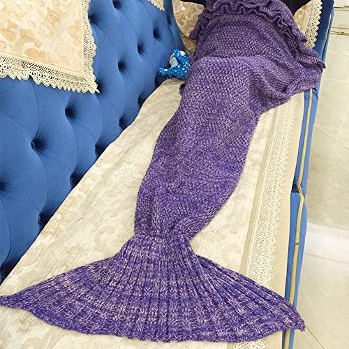 Feature : Size: 71"*35.5"( 180 x 90 cm ),1.8LB / Made of soft and cozy Acrylic Fibers, Eco-friendly and Skin-friendly perfect for kids or adults wrap. / Crochet by hand, more exquisite and elegant, ideal gifts for girls and women, give them a warm and sweet winter. / The creative cuddly mermaid tails blanket with bright color and beautiful cable knitted pattern to complement your living room or bedroom decor. / Easy inside and out, can be used on the couch, for camping, sleepovers, in bed, in the car - anywhere!