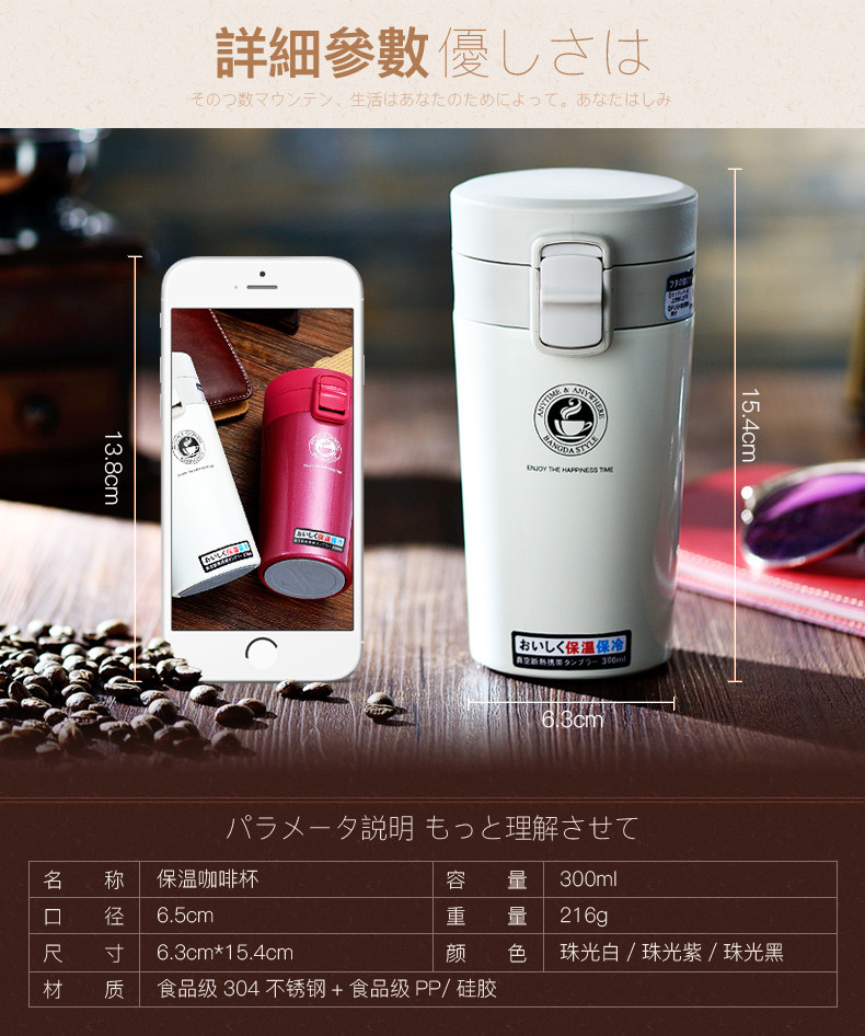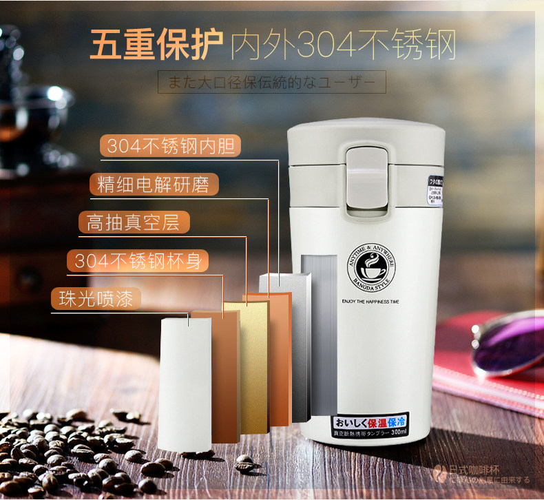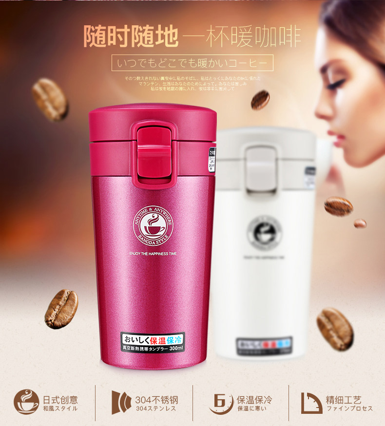 邦达不锈钢真空保温杯男女士时尚创意咖啡杯便携随手直身水杯子