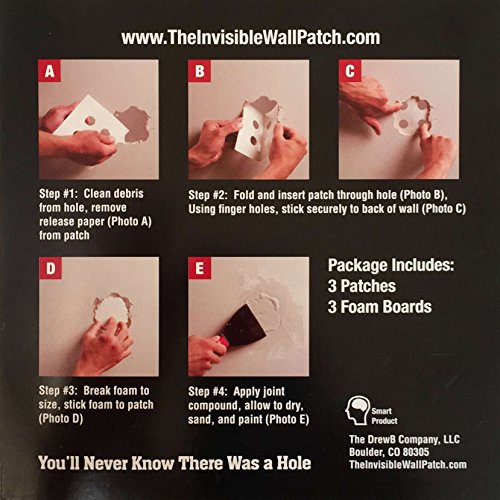 Drywall Repair Patch - 3 Pack - THE INVISIBLE WALLPATCH - Best Drywall Repair Patch - Professional Results - Self-Adhesive - Easy to Use - Up to 5" Hole - Sticks Behind The Wall So You Can't See It!