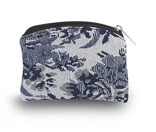 Brocade Rosary Pouch Blue Flower Pattern Zipper Closure