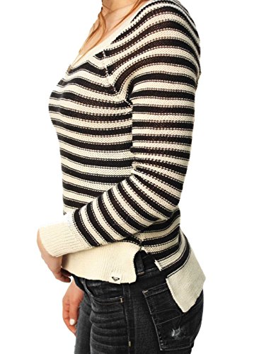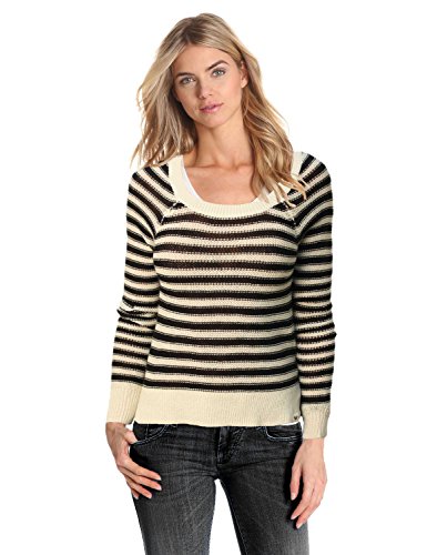 Roxy Juniors Starboard Long Sleeve Scoop Neck Sweater-Black/White stripe