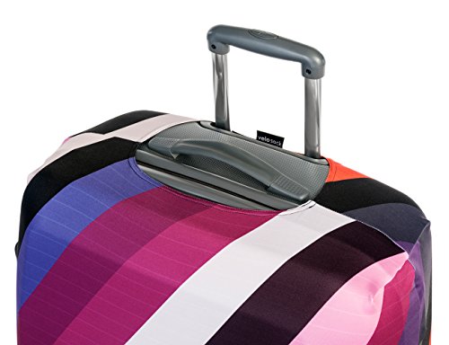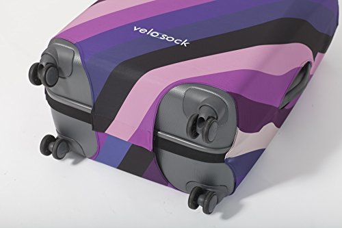 SAY 'NO' TO EXPENSIVE ONE-TIME DEALS WITH UGLY PLASTIC WRAPPING Finally you don't have to use those disposable plastic wrapping services to keep your luggage clean and scratch-free through airport handling. Or stand at the luggage carousel wondering which bag is yours. The VELOSOCK luggage cover will serve you from flight to flight and look so much more amazing. TURN YOUR LUGGAGE INTO A ROCKSTAR Is your luggage black? Did the bag get dirty after the first flight? Is it hard to find on the luggage carousel because almost every other bag is black as well? Not cool, right? Get your luggage a VELOSOCK cover, give it a new life and add style to your travels. And what's most important - no more guessing which bag is yours! THIEVES WILL HATE IT For thieves time is everything. They will not risk getting caught because of a pesky cover. Taking the cover off and then putting it back on, or even just taking it off makes them lose precious seconds. EVEN YOUR GRANDMA CAN FIT A VELOSOCK COVER ON- JUST SLIP IT AND CLIP IT! The stretchy material and unique design make it super easy for anyone: 1. Set in on the top 2. Stretch it to the bottom 3. Clip it That's it! Your luggage is not just protected but also so good-looking that you can't take your eyes off it! WHEN IT GETS DIRTY - WASH IT IN WASHING MACHINE Since all dirt stays on the cover, not on your luggage, you can easily and safely wash it in a washing machine once the cover gets dirty. Wash at 30 - 40° C (80 - 100° F) or less. We promise that colours will not wear off even after many times in the wash. Fabric: 90% Polyester, 10 % Spandex