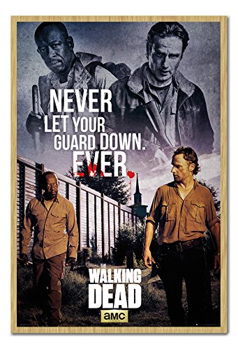 -. Title : The Walking Dead Never Let Guard Down Poster Magnetic Notice Board Beech Framed - 96.5 x 66 cms (Approx 38 x 26 inches)